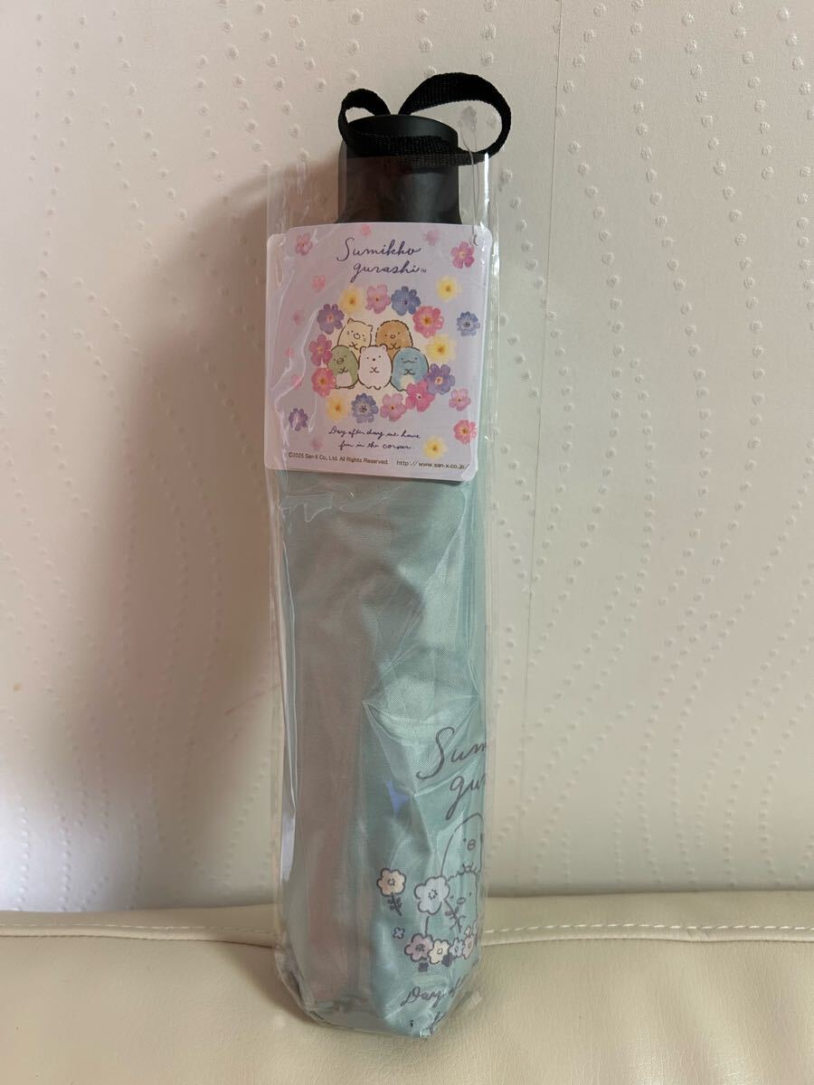 > ☆未使用☆すみっコぐらし 晴雨兼用! 折りたたみ傘/全2種のうち、薄いブルー系/ねこ、とかげ、しろくま、ぺんぎん?とんかつ他