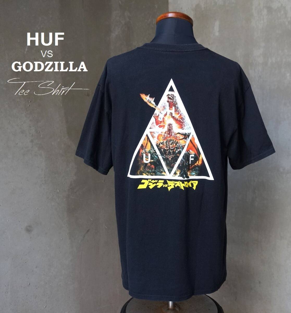 > ハフ HUF コラボ GODZILLA ゴジラ VS デストロイア 黒 ブラック 半袖 Tシャツ L