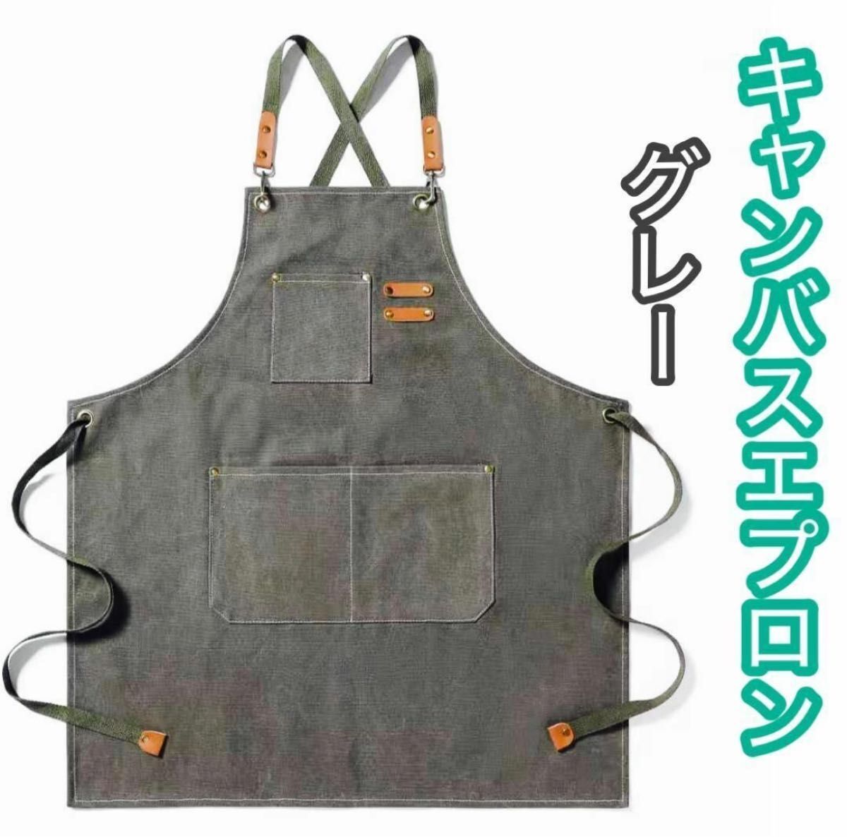 - エプロン グレー DIY 男女兼用 作業服 ワークエプロン 園芸 ガーデニング 業務用 電工 キャンバス地 バッククロス