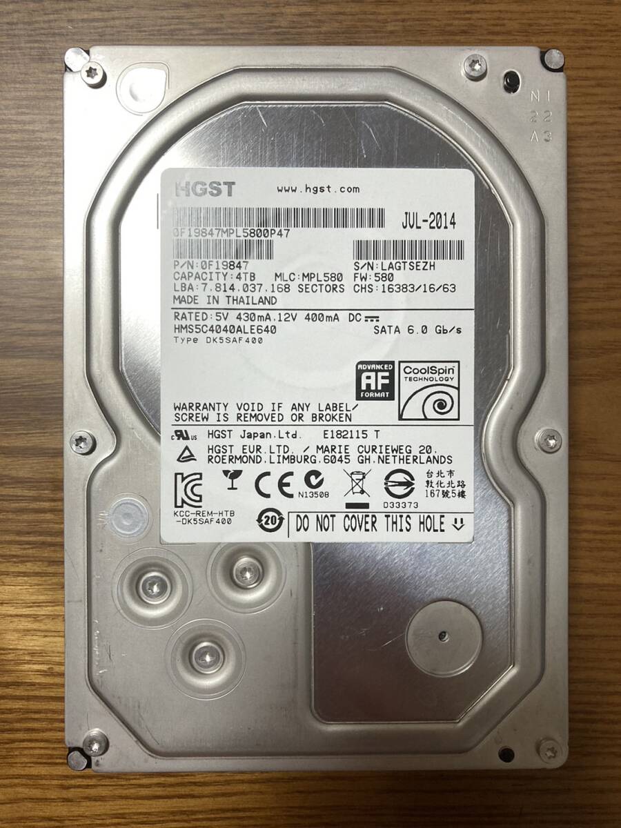 > 【状態◎】日立 Hitachi/HGST HMS5C4040ALE640 3.5インチ HDD 4TB(低消費電力・低負荷のデータセンター向けHDD)
