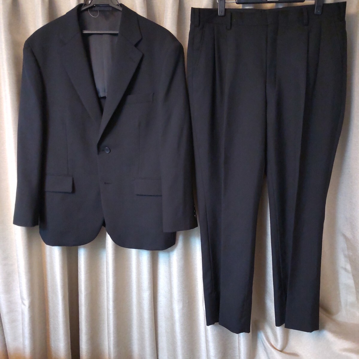 - 新品スーツRICHIESTA■ シャイニングブラック■BE3■背抜き■大賀の日本製