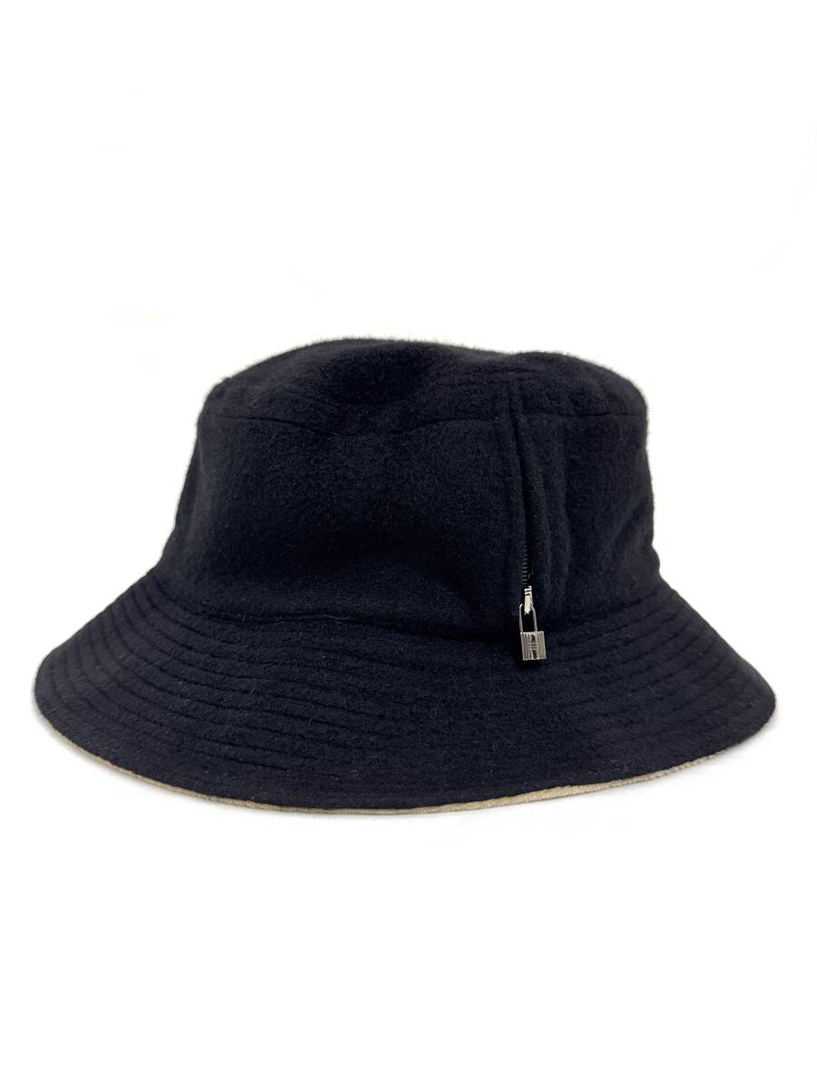 - 7D2001【本物保証】エルメス ハット 帽子 カデナ ジップアップ ポケット カシミヤ 100% ブラック 57 HERMES