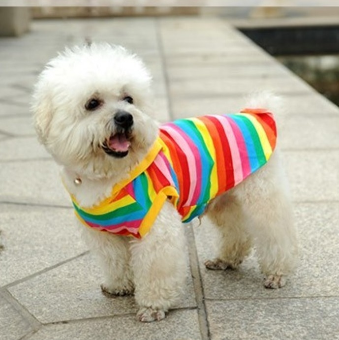 > Lサイズ レインボー タンクトップ しましま ドッグウェア カットソー Tシャツ チワワ トイプードル 小型犬 夏服 夏用