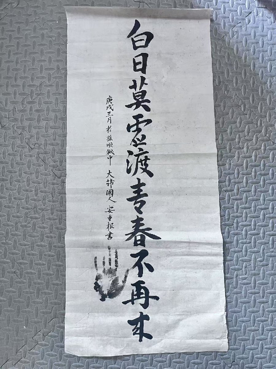 - ▼渡鶴羽▼W1334『朝鮮古書道 高麗 朝鮮 安重根 ★ 朝鮮古書画 真筆 手書き 肉筆卷物』