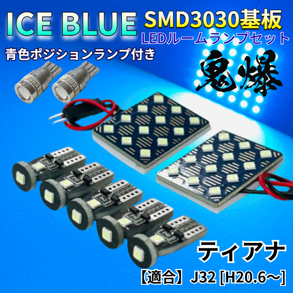 > 【アイスブルー】ティアナ J32 [H20.6~] 鬼爆基板 3030SMD LED ルームランプ スモールランプ セット 車内灯 室内灯 パーツ アクセサリ