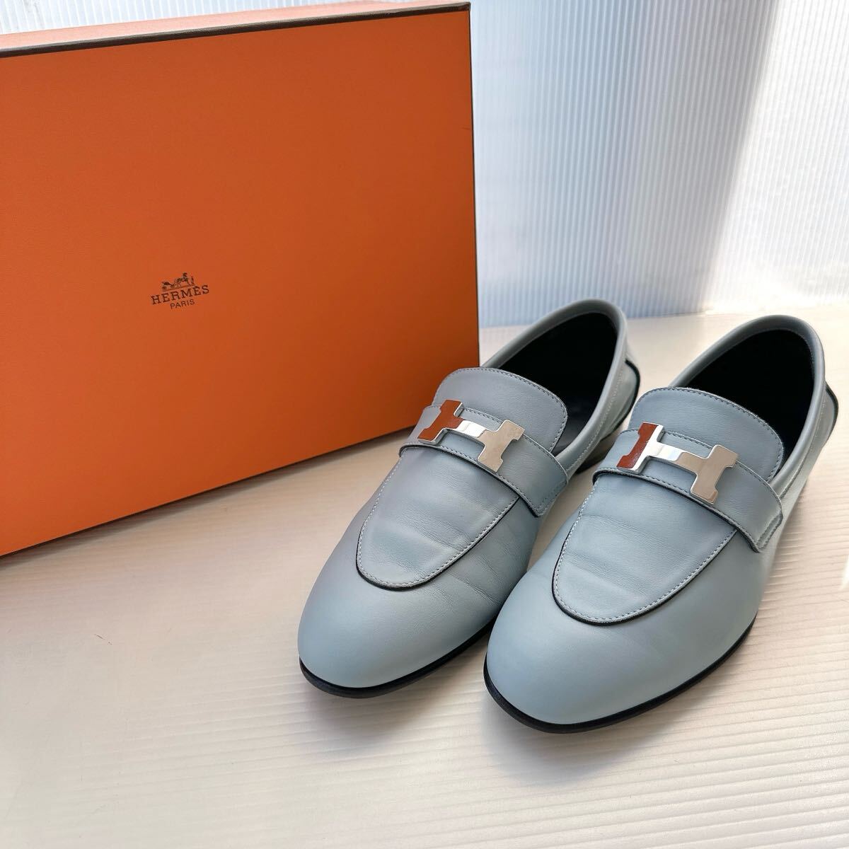- HERMES エルメス モカシンパリ H金具 ローファー 革靴 フラットシューズ スリッポン レザーシューズ 靴 極美品 36.5 レーディス