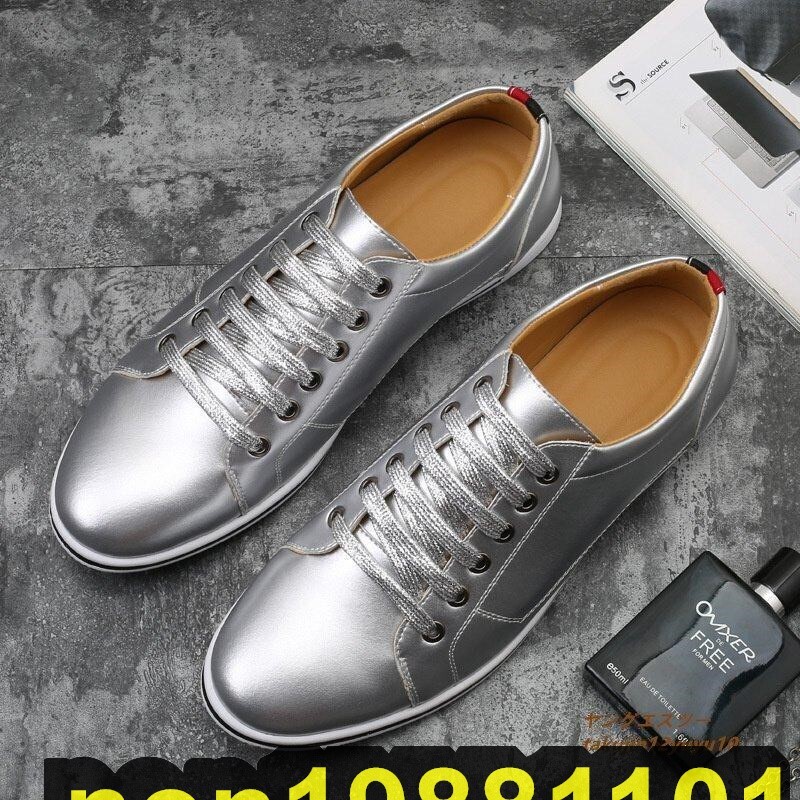 - 新品特売★スニーカー メンズ レザーシューズ 運動靴 ローファー 滑り止め ドライビングシューズ お洒落 ピカピカ 快適 シルバー 27.5cm