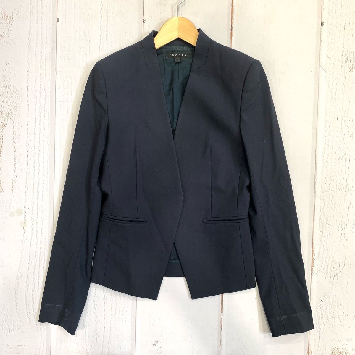 - E ▼ 人気モデル!! '洗練されたデザイン' Theory セオリー ウール混 ボタンレス ノーカラージャケット size:2 レディース アウター