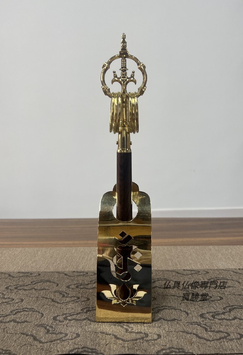 - 密教法具 大日如来の梵字錫杖立 種字 真言 仏具 真鍮製 【送料無料】【仏具仏像専門店寶勝堂】