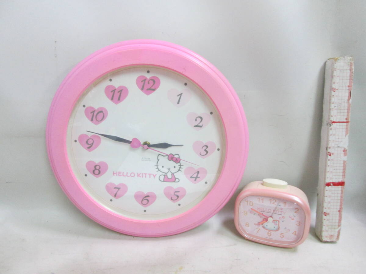 - ハローキティ 一番くじ 壁掛けかけ時計+目覚まし置き時計 共にテストOK 2台で H35cm 送料は商品説明欄に記入