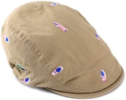 - ●ラコステ スニーカー刺繍柄 ハンチング 58cm ベージュ ウォッシュ コットン シューズ柄 帽子