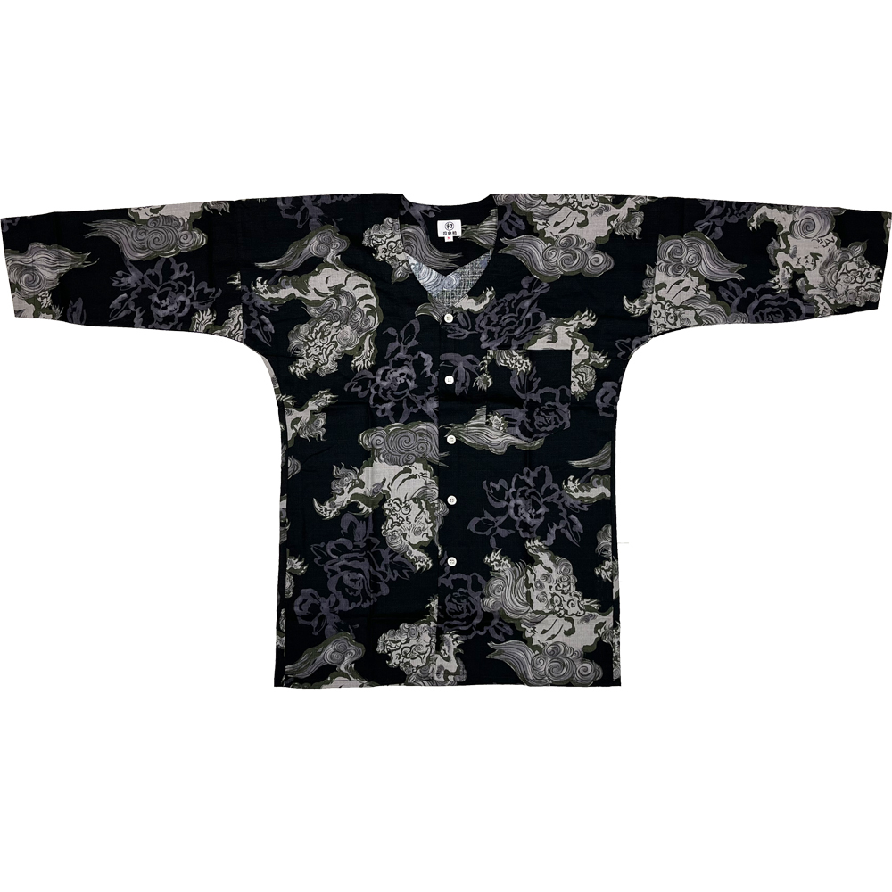 - お祭用品/肉襦袢 まるわ日本橋 鯉口シャツ 唐獅子 [R2503-10黒鳶] 3号(子ども用)