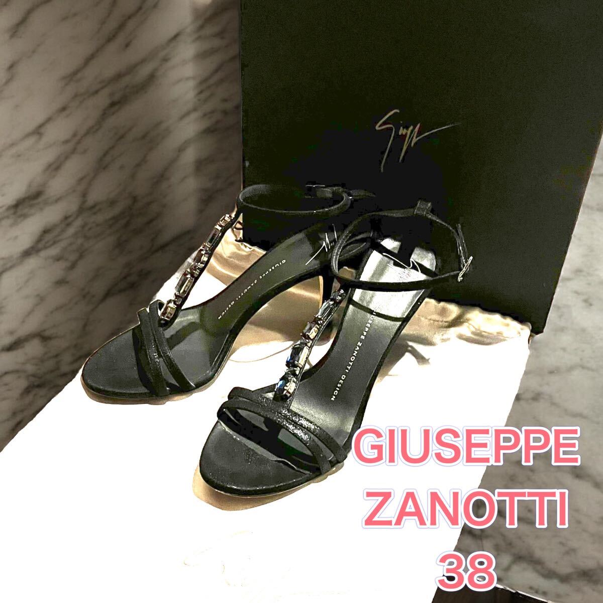 - 【美品】【箱付き】GIUSEPPE ZANOTTI サンダル ビジュー 38 ブラック ジュゼッペザノッティ ハイヒール ヒール 黒 ピンヒール 23.5