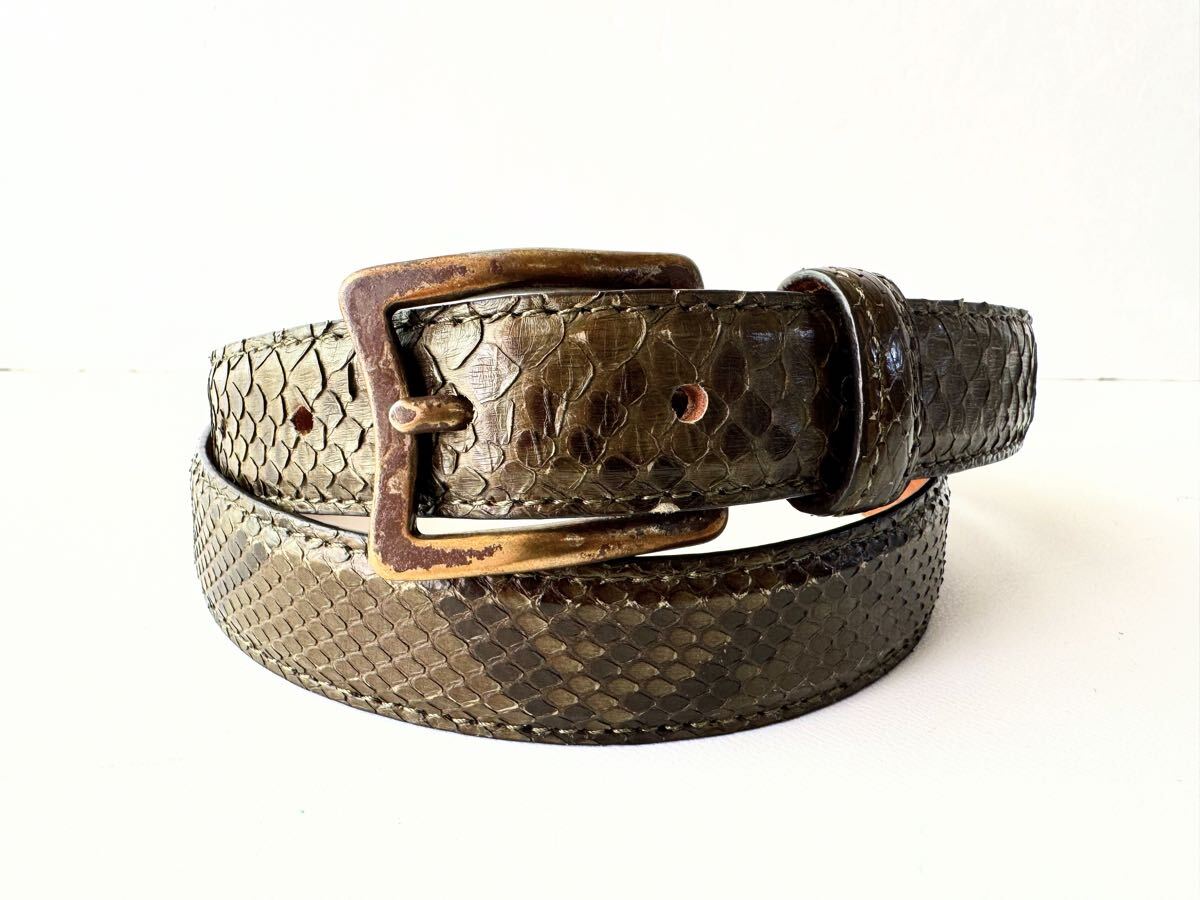 - D'AMICO size85くらい イタリア製パイソンレザーベルト ダークグリーン 深緑 PYTHON アンドレアダミーコ ダミーコ