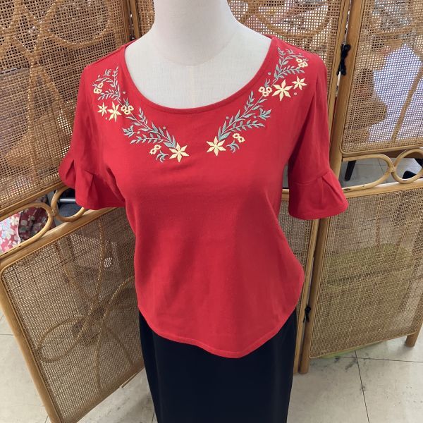 - 【2004-1I】レディース トップス レッド 刺繍 grove Mサイズ 1320【220101005139】
