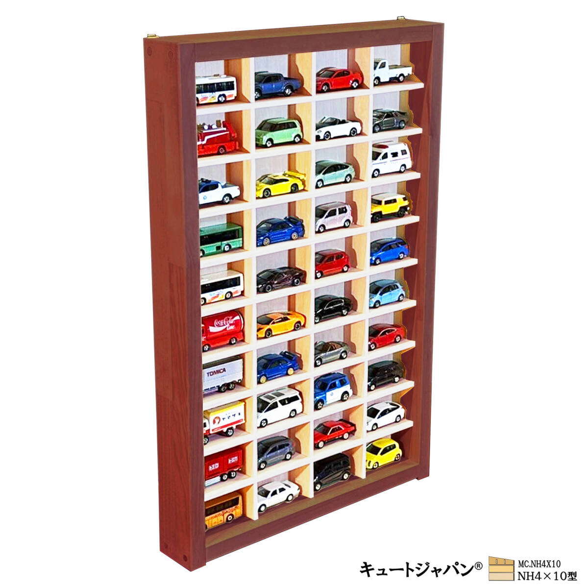 > 送料無料★木製トミカケース 40台収納 アクリル障子なし マホガニ色塗装 日本製 コレクション ディスプレイ NH4×10型