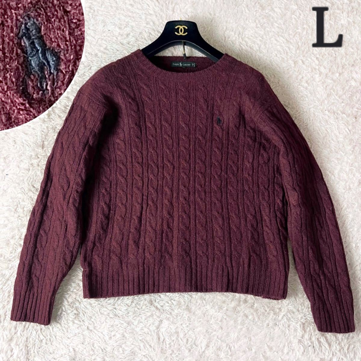 - RALPH LAUREN ラルフローレン ケーブルニット ケーブル編み セーター ブランドロゴ刺繍 ポニー ワンポイント刺繍 赤 ワインレッド L
