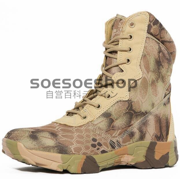 - 新品 アウトドアシューズ 作業靴 ミリタリー タクティカルブーツ メンズ 登山靴 トレッキング 防滑 バイクブーツ サンドパイソン柄24~28cm