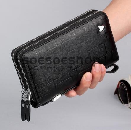 - 男性用長財布 メンズ クラッチバック セカンドバッグ ダブルラウンドファスナー型 大容量 多機能 ストラップ付き ブラック