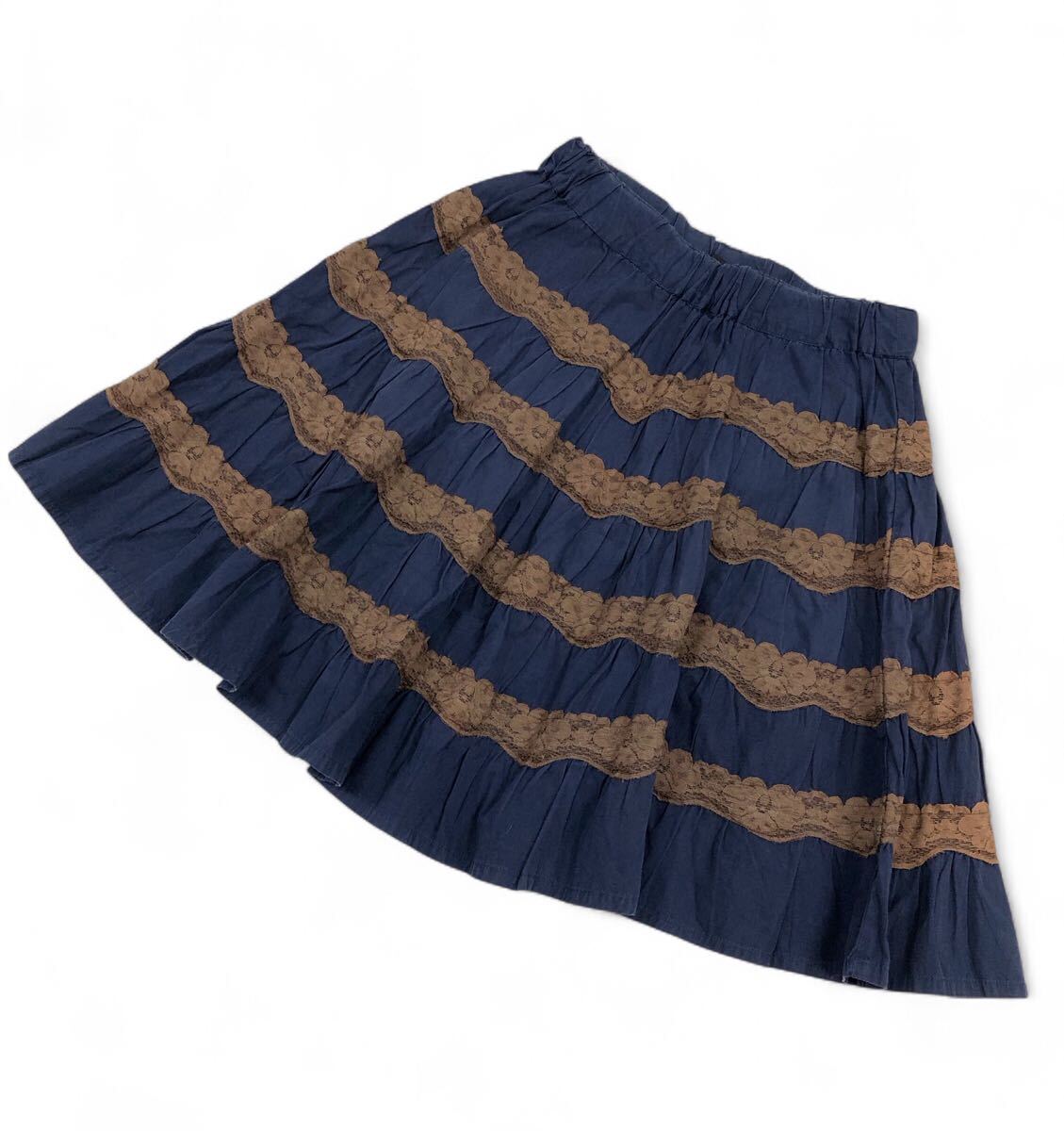- ■BEAMSBOY ビームスボーイ■レース切替 ボーダー柄 フレアスカート ネイビー×ブラウン