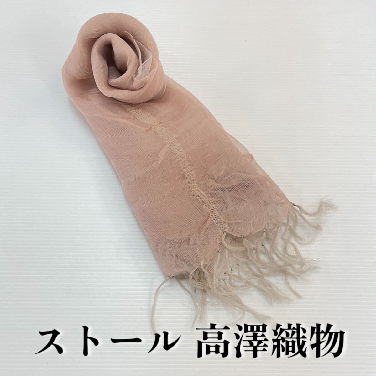 > 【ストール 高澤織物】未使用 シルク? 絹 春夏 スカーフ ショール ピンク ベージュ 茶色 肩掛け 膝かけ 国産 日本製 防寒 #0263-706Z8