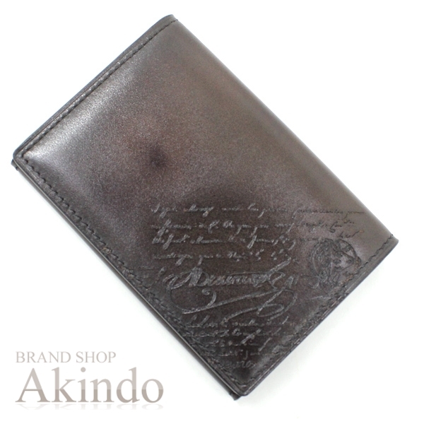 > 【新品同様】ベルルッティ カードケース 二つ折り 名刺入れ インブイア スクリットレザー カードホルダー ブラウン茶 カリグラフィ メンズ