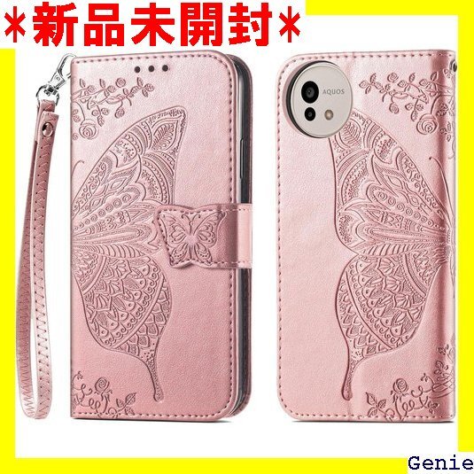 - AQUOS wish4 用携帯カバー カード収納ス 蝶 カードポケット付き スタンド機能 手綱 ローズゴールド 88