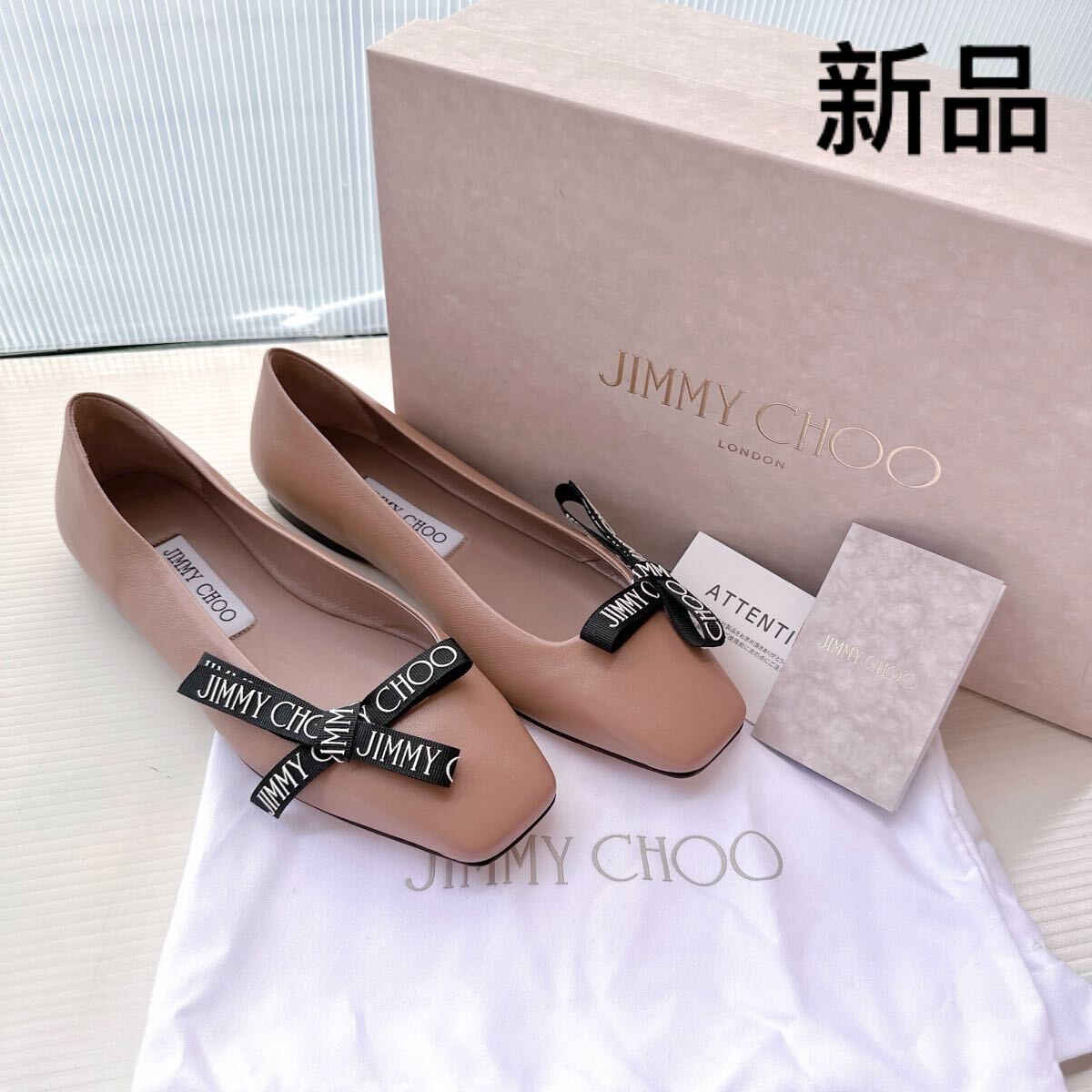 - JIMMY CHOO ジミーチュウ ロゴ入り リボン フラットシューズ バレリーナ レザー 新品 35 イタリア製 シューズ レーディス パンプス