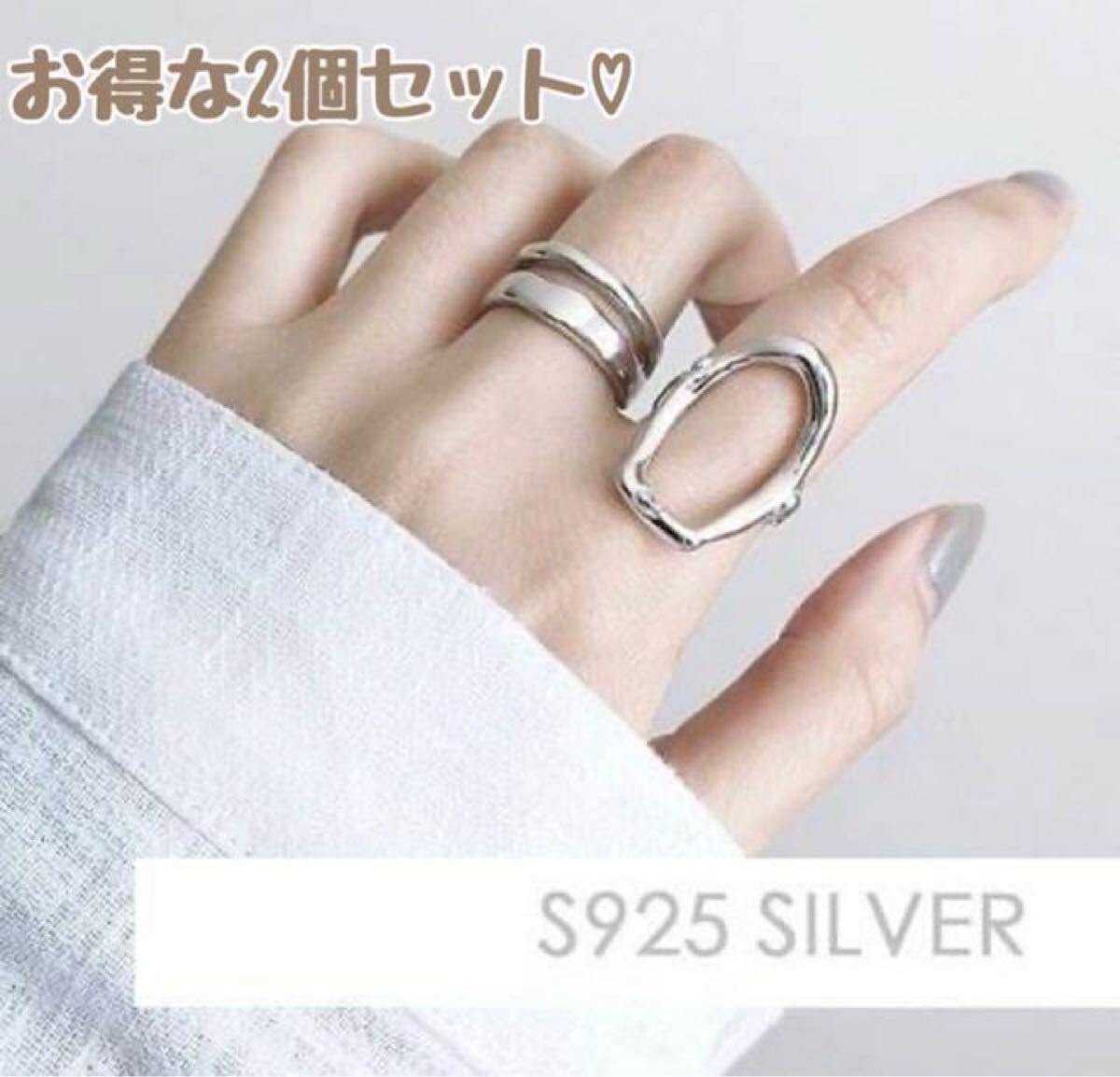 - シルバー リング フリーサイズ 2個セット 925 韓国 レディース メンズ