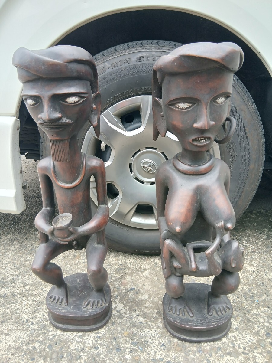 - 置物 木彫り 男女 インテリア 民族 古い 木製 コレクション ヌード