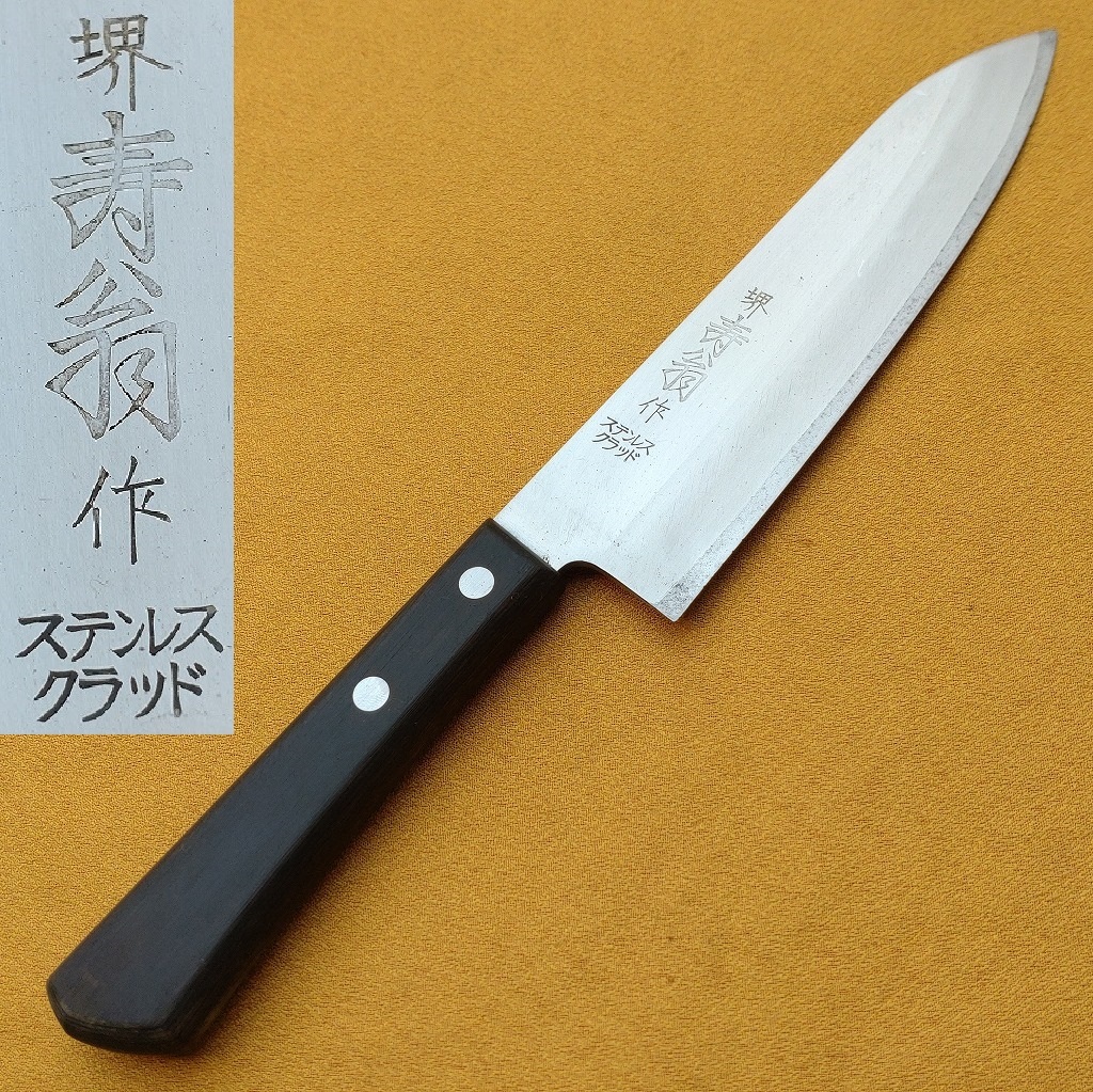 > 万能包丁 堺寿翁作 ステンレスクラッド 割込鋼 刃長約173㎜ 両刃 洋包丁 三徳包丁 調理器具 刃物 日本製 【3956T312】