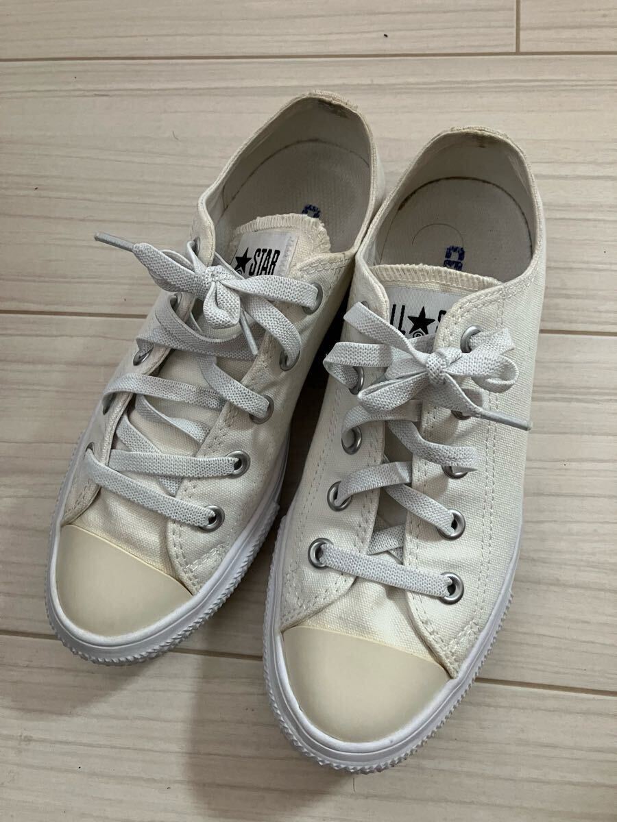 - コンバース CONVERSE スニーカー ゴム紐 シューズ ローカット オールスター ALL STAR 白 ホワイト 美品 キャンバス
