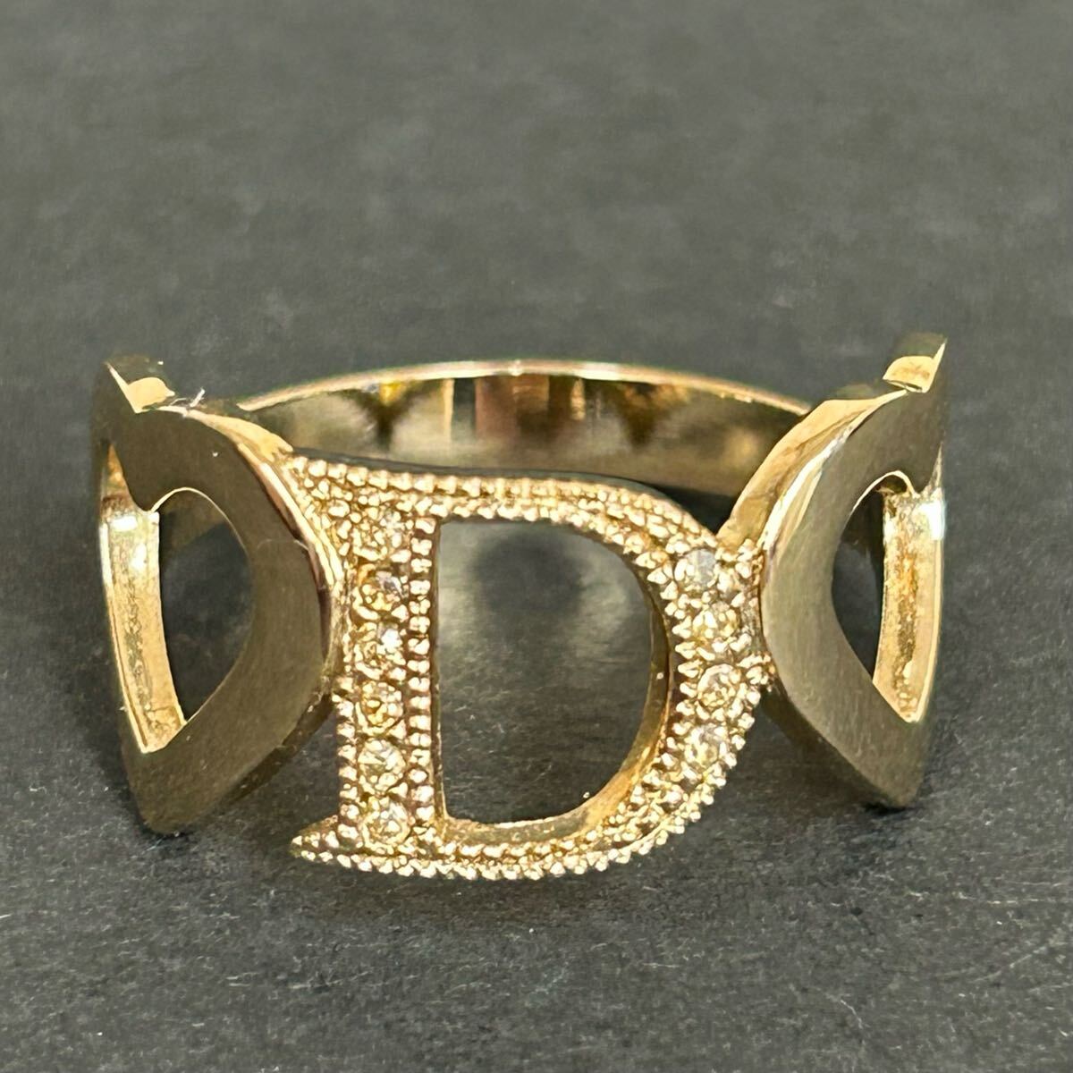 - 【ディオール】基準内 Dior 指輪 Dロゴ ハート ラインストーン サイズ7 リング 13号 アクセサリー ゴールド色系 金属素材 レディース