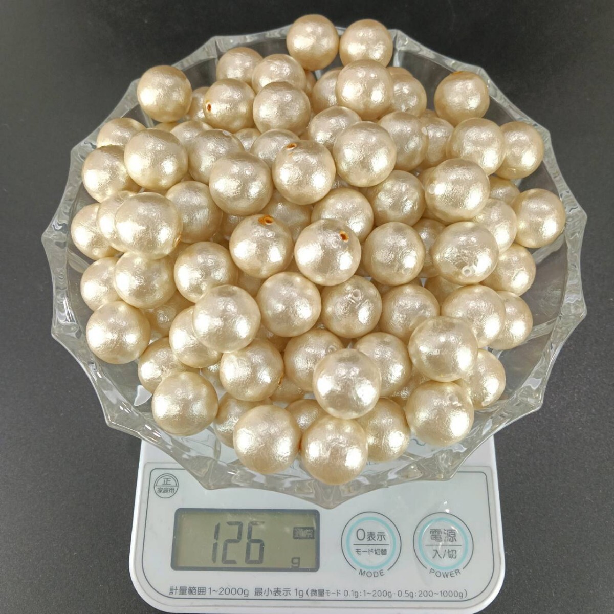 > L157☆未使用 約120個 大量 コットンパール ビーズ 片穴 ラウンド 約126g 18mm シャンパンゴールド ヴィンテージ アクセサリー S-239