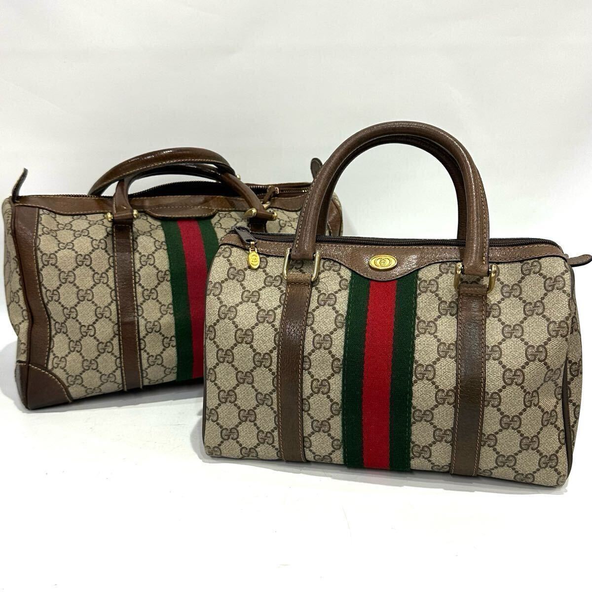> 80's OLD GUCCI シェリー GG柄 ボストンバッグ 2点 おまとめ オールド グッチ ハンドバッグ PVC レザー