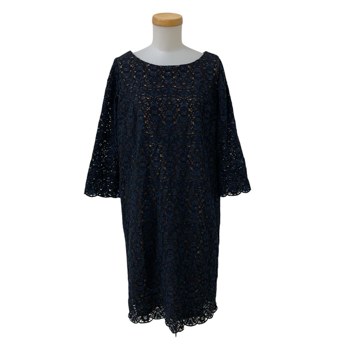 - B450-62 大きいサイズ JUNKO SHIMADA ジュンコシマダ ワンピース ワンピ レース デザイン ネイビー 紺 レディース 42