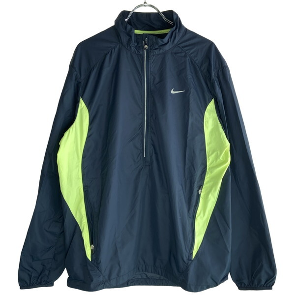 - 古着 メンズL NIKE/ナイキ ウインドブレーカー ピステトップ ハーフジップ スポーツ ネイビー/イエロー 322156-475
