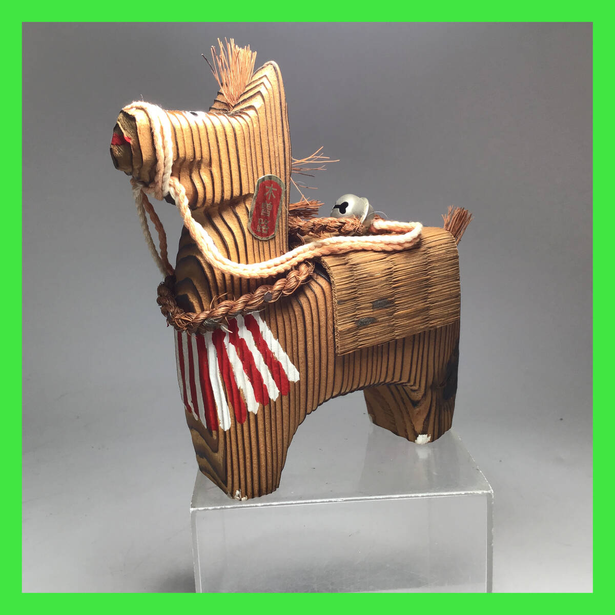 - AZ0098☆木彫りの馬 鈴付き 民藝 郷土玩具 木曽路