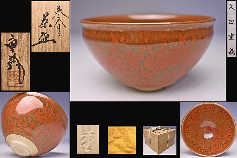 > 久田重義 ★ 朱天目茶碗 ★ 共箱共布栞 ★ 常滑焼 ★ 辻晋六 窯で修行 ★ 希少作 ★ 斑文美しい ★ 中国陶磁器写し ★ 天目形 ★物故作家