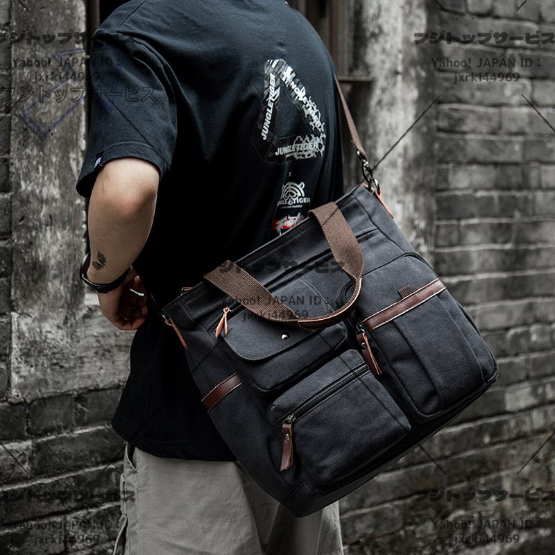 - 新入荷 ショルダーバッグ 2wayトートバッグ 斜めがけ A4サイズ対応 縦長 カジュアル 帆布 メンズ ブラック 2色