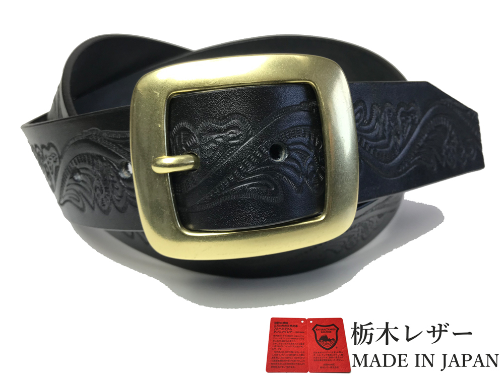 - 新品 栃木レザーベルト 固定サイズ 本革 牛革 メンズ 黒 ブラック 国産 日本製 レザー クラフト カジュアル 40mm 46インチ W032BKG 115