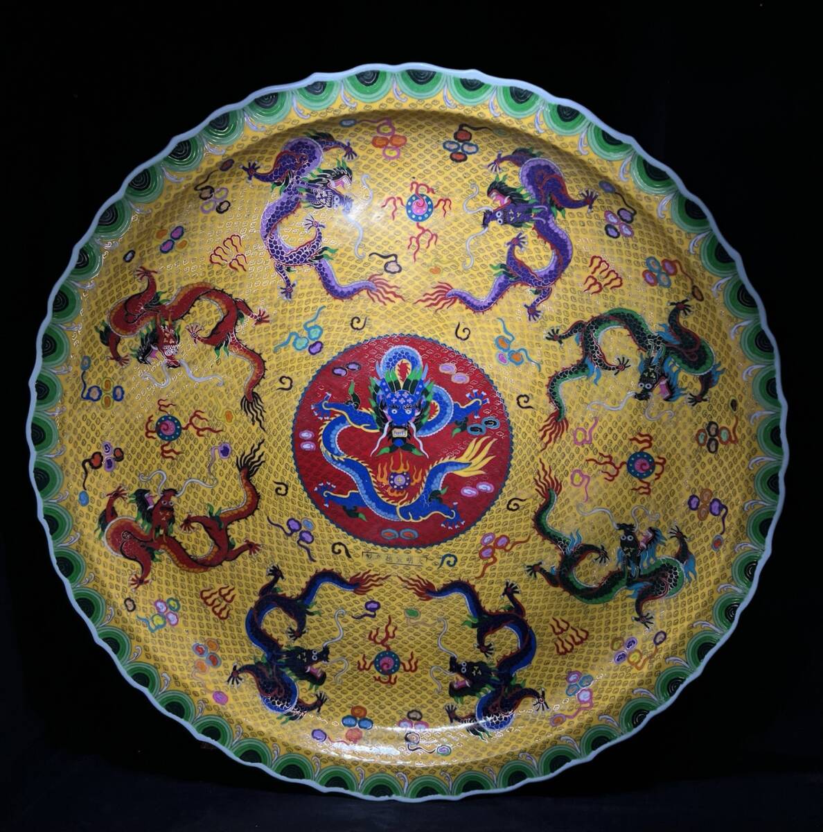 > 多宝閣 ■ 201251 中国磁器 中国骨董【明代宣徳七宝九鳳文鑑賞皿】工芸品 施釉陶 陶芸 置物 收藏品 孤品