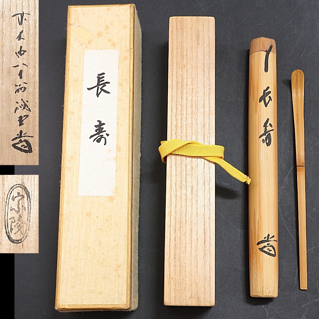 - ◆◇大徳寺 藤井誠堂 竹茶杓 「長寿」竹筒共箱付 高野宗陵下削 茶道具◇◆