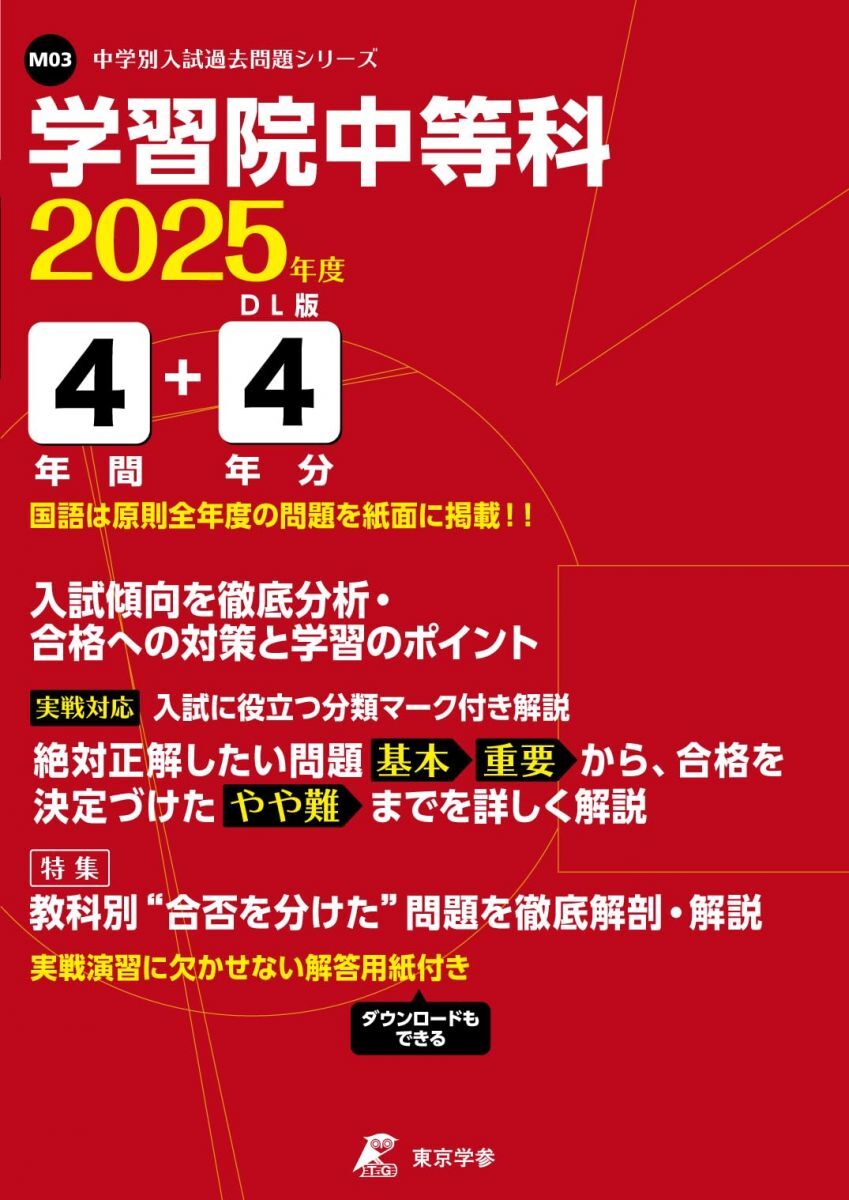 - 学習院中等科 2025年度版 【過去問4+4年分】 (中学別入試過去問題シリーズM03)