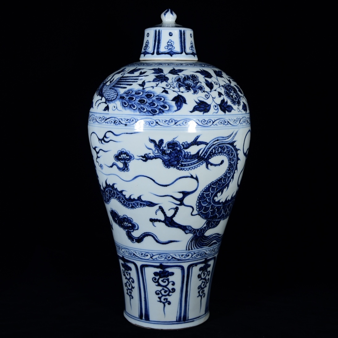 > 唐物 元 青花 龍紋 梅瓶 陶芸 磁器 中国磁器 置物 賞物 極細工 古美術品 中国古玩 骨董品 D65