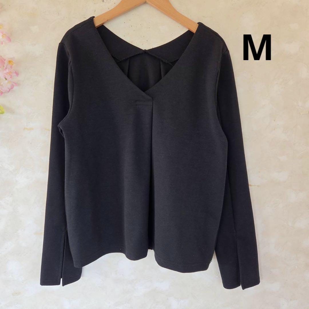 - ブラウス 【M】黒 ブラック 長袖 スリットスリーブ 無地 Vネック