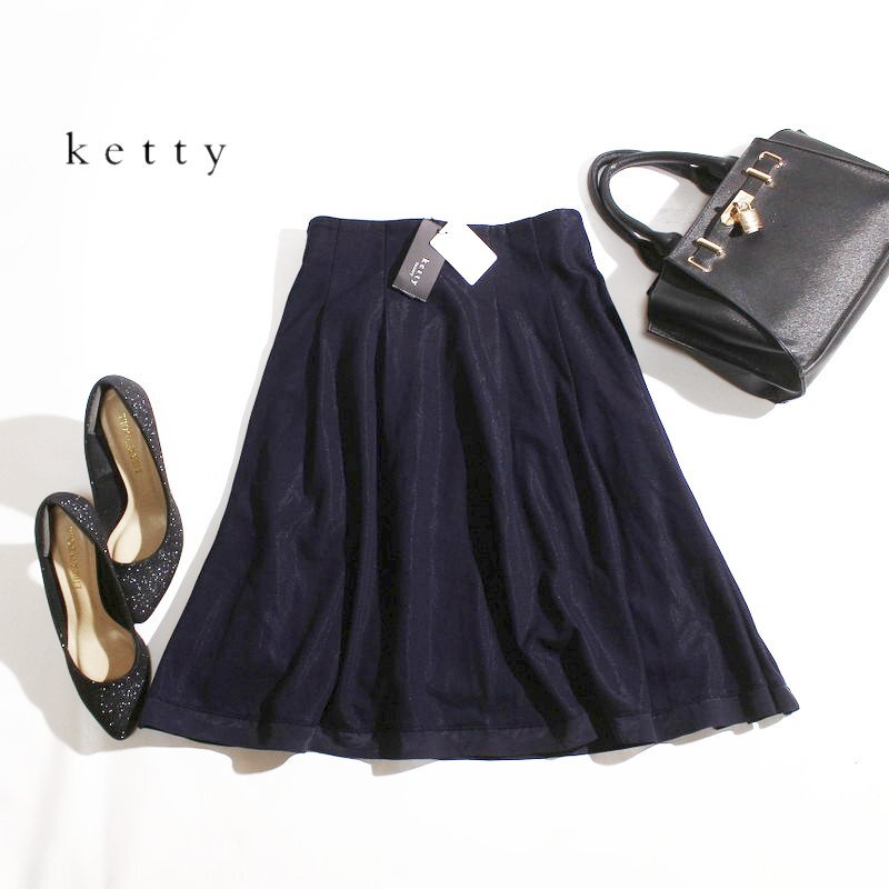 - 未使用 新品 ketty ケティ 春 夏 綺麗め ほんのり艶 フレアスカート 11号 3 ネイビー 紺 オフィス 通勤 綺麗 コットン ジャージ― メッシュ