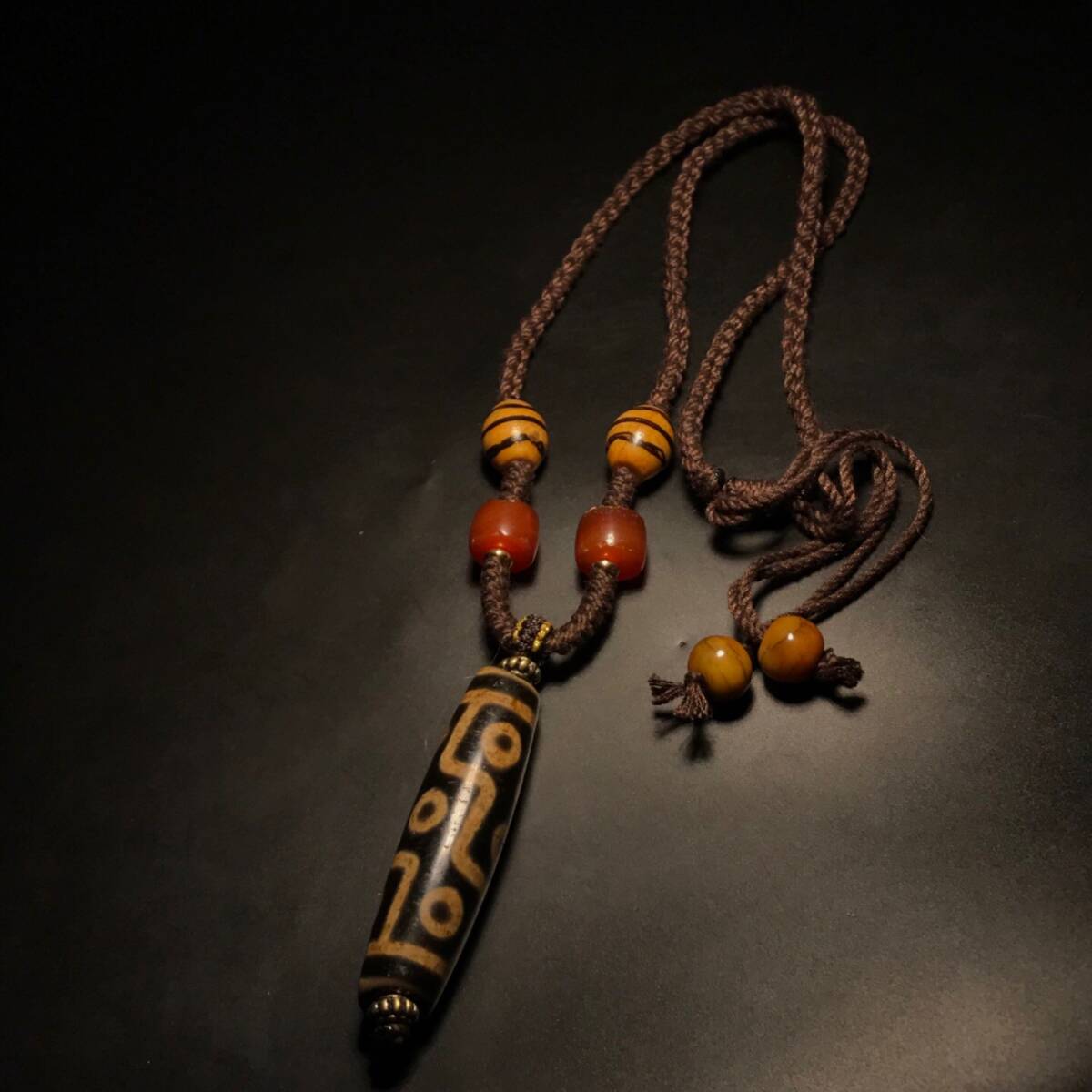 - ▽鴻▽ 瑪瑙製 細密彫 折線九眼天珠ネックレス 根付 裝身具 古賞物 中国古玩 中国古美術