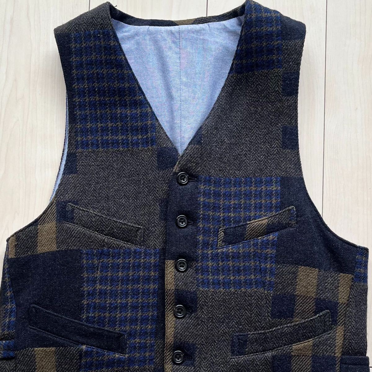 - BEAMS+ビームスプラス パーチワーク柄 チェック ツイード ジレ ベスト M 紺