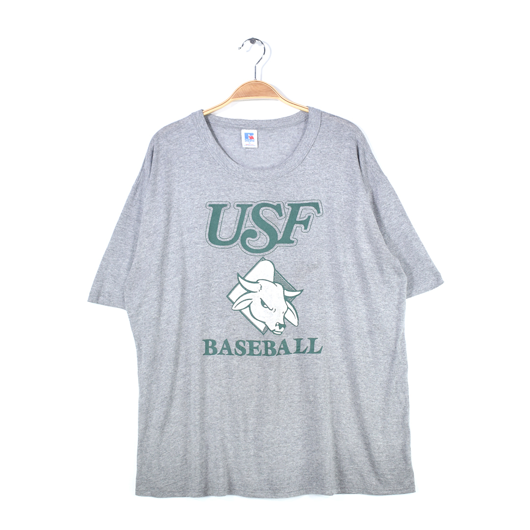 - 【送料無料】90s ラッセル USA製 ヴィンテージTシャツ 南フロリダ大学 USF カレッジ グレー 袖シングルステッチ RUSSELL メンズXL @BZ0389